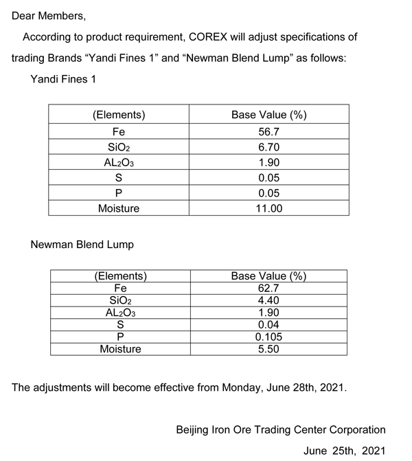 Announcement for Adjustment of Trading Brands Specifications