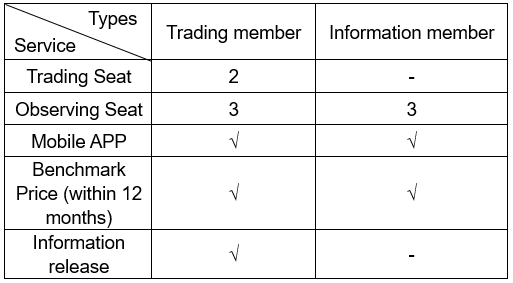 I. Membership types include trading member and information member. Trading member are corporate legal entities which undertake iron ore spot trading activities, and information members are corporate legal entities which undertake information or other service.