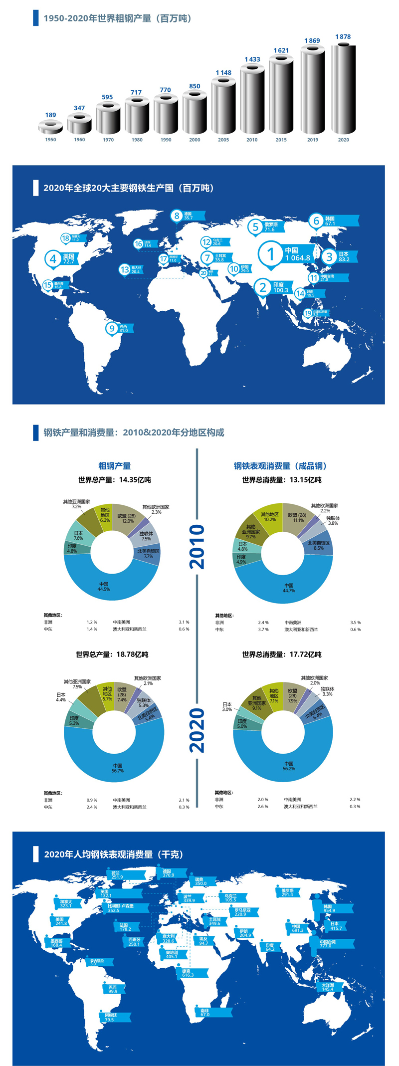 世界鋼鐵協(xié)會(huì)總干事埃德溫.巴松在該期刊序言中提到:“鋼鐵工業(yè)既是全球經(jīng)濟(jì)發(fā)展的核心,也是現(xiàn)代社會(huì)可持續(xù)發(fā)展的核心。盡管受到新冠疫情大流行的影響,但由于各地區(qū)受到的影響程度不同,到2020年底鋼鐵需求僅出現(xiàn)小幅收縮,這對(duì)于全球鋼鐵行業(yè)來說無疑是幸運(yùn)的。中國的鋼鐵消費(fèi)量正在不斷擴(kuò)大,反觀世界其它地區(qū)的消費(fèi)量正在不斷收縮。得益于新冠疫苗接種在各個(gè)國家的穩(wěn)步推進(jìn)以及全社會(huì)社交行為的改變,我們期待鋼鐵需求在2021年恢復(fù)正常。