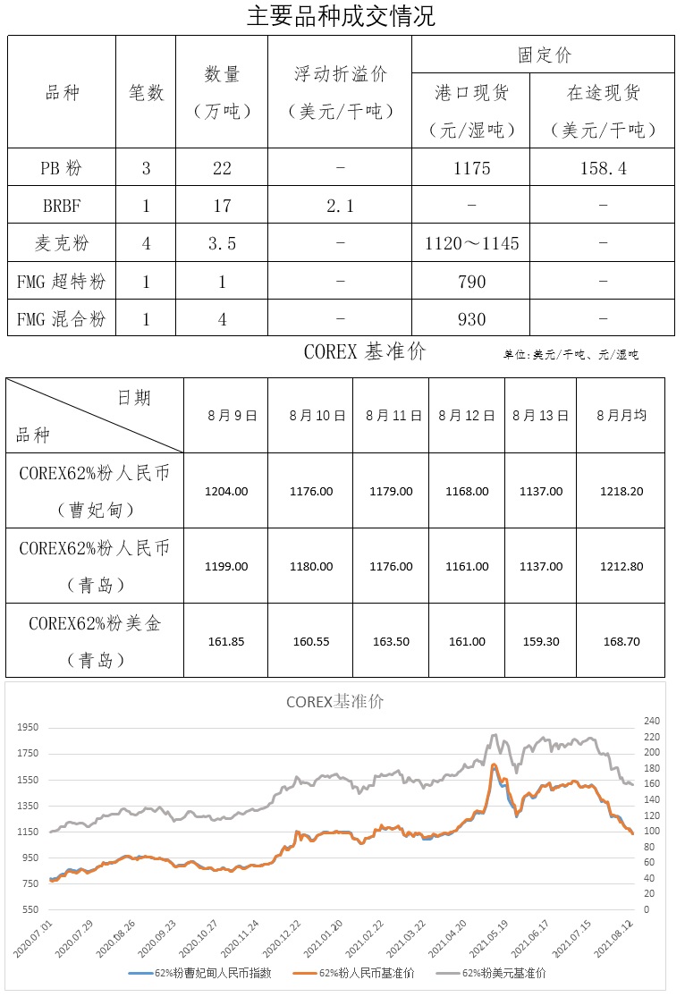 8月9日-8月13日成交17筆共55.8萬噸,其中在途2筆34萬噸,港口15筆21.8萬噸。