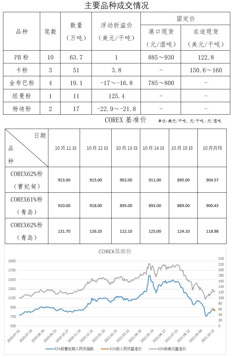 10月11日-10月15日成交30筆共192.26萬噸,其中在途13筆175萬噸,港口17筆17.26萬。