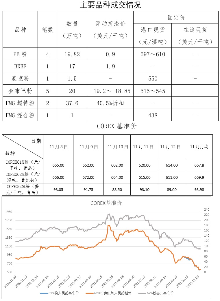 11月8日-11月12日成交25筆共156.93萬噸,其中在途7筆138.6萬噸,港口18筆18.33萬
