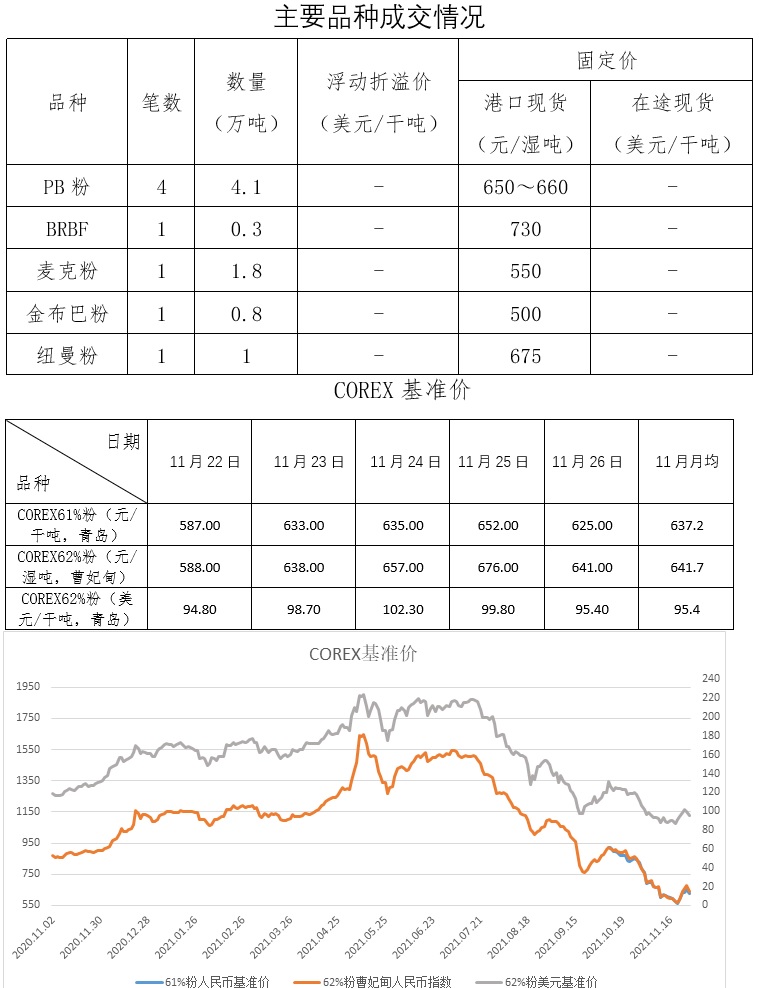 11月22日-11月26日成交10筆共11.4萬噸,均為港口現貨成交。