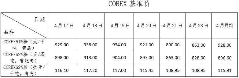 4月17日~4月23日成交63筆共115.66萬噸,其中在途5筆共60萬噸,港口58筆共55.66萬噸。主要成交品種包括:PB粉11筆共28.4萬噸,金布巴混合粉5筆共29萬噸,麥克粉2筆共7.5萬噸,紐曼塊1筆共8萬噸,卡拉加斯粉3筆6.57萬噸,F(xiàn)MG混合粉4筆共4萬噸。