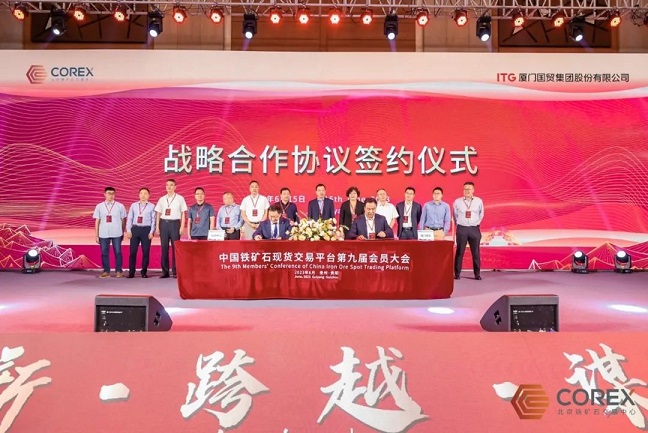 會議期間,北鐵中心與廈門國貿集團股份有限公司舉辦戰略合作協議簽約儀式。本次合作是北鐵中心開拓“大客戶專場”業務模式的重要舉措,雙方將通過平臺專門板塊開展全方位合作。游松總裁及廈門國貿礦業有限公司總經理李鵬代表雙方簽署協議。王穎生、錢景汾、中國礦產資源集團鐵礦事業部資源平衡總監劉政群等領導共同見證簽約。