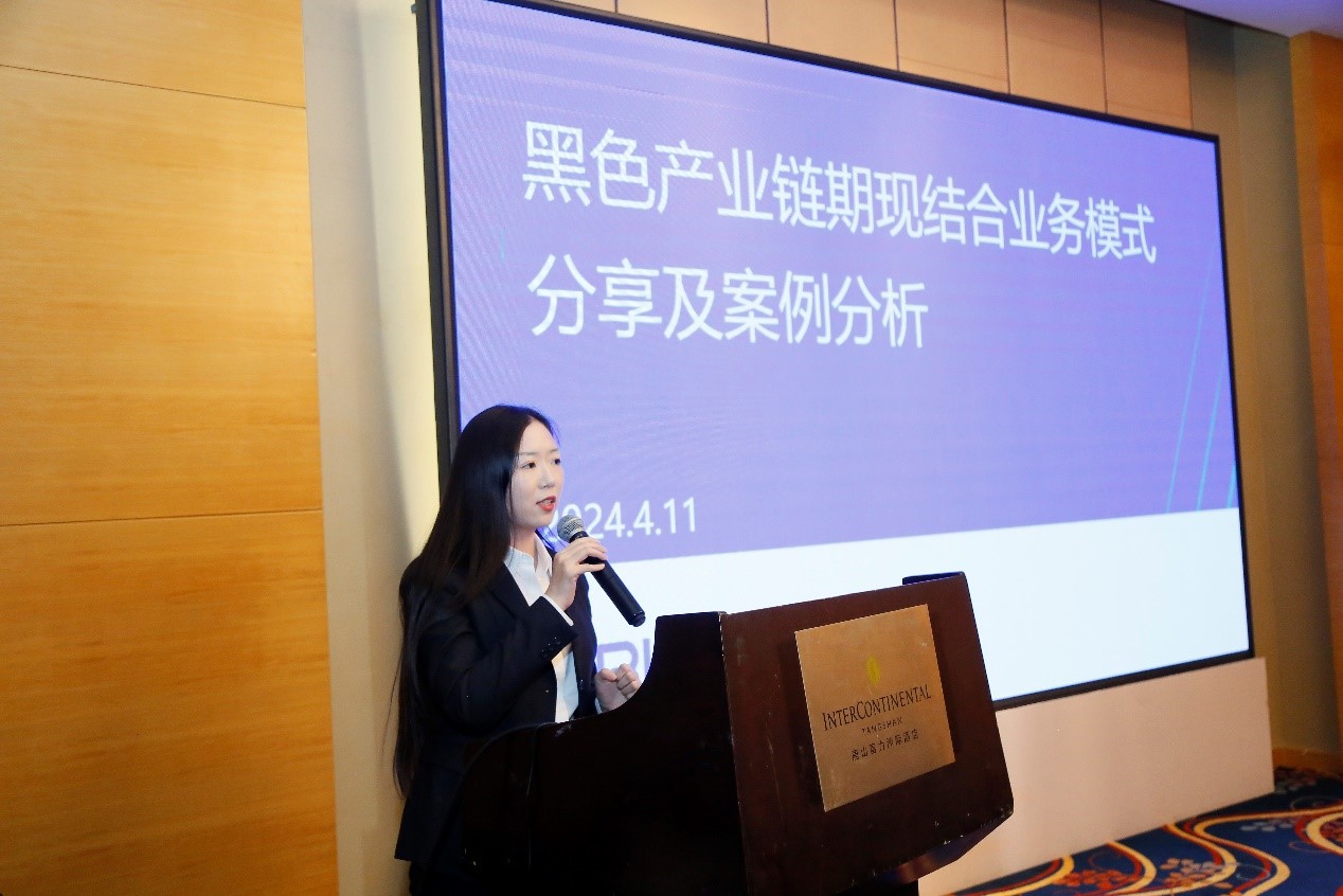 河鋼集團北京國際貿易有限公司期貨部科長李夢做題為《黑色產業鏈期現結合業務模式分享及案例分析》的演講,結合河鋼集團實踐經驗,深入介紹了鐵礦石套期保值工具應用、基差貿易模式、具體案例、交易雙方重點操作技巧,以及利潤套保、庫存管理等內容。